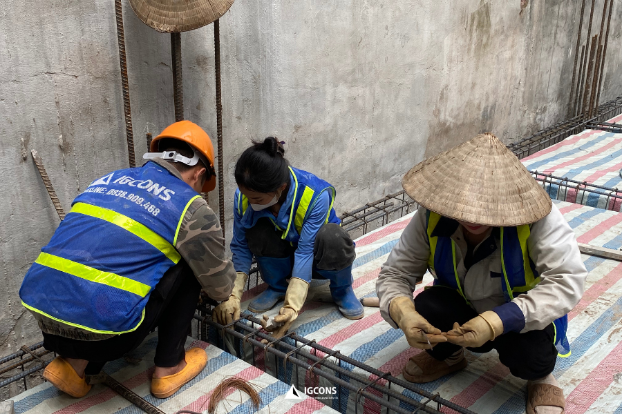 Trong suốt quá trình thi công, đội giám sát IGCONS thường xuyên kiểm tra, rà soát độ chính xác, độ an toàn và chất lượng vật liệu để đảm bảo mọi hạng mục được thực hiện đúng quy chuẩn, tiến độ công trình luôn được duy trì ổn định.