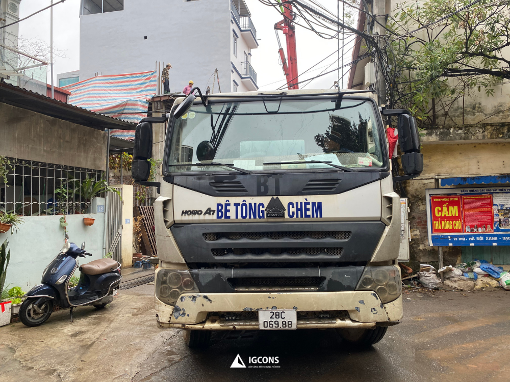 Tại dự án nhà anh Hoàn ở Tây Mỗ, sau khi hoàn tất công tác gia công, lắp dựng cốt thép và cốp pha dầm sàn tầng 3 theo đúng hồ sơ thiết kế đã được nghiệm thu, đội thi công IGCONS đã chính thức triển khai hạng mục đổ bê tông dầm sàn tầng 3 – một trong những công đoạn quan trọng, mang tính quyết định đến khả năng chịu lực và độ bền vững lâu dài của công trình.