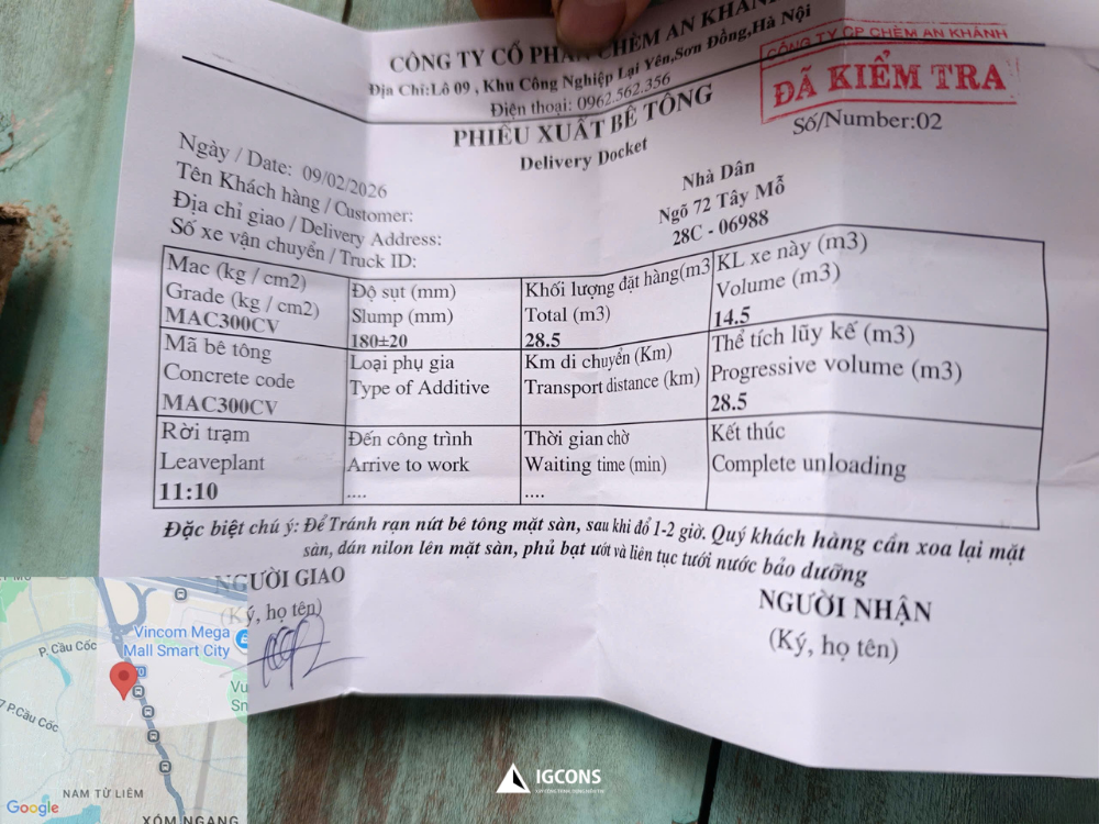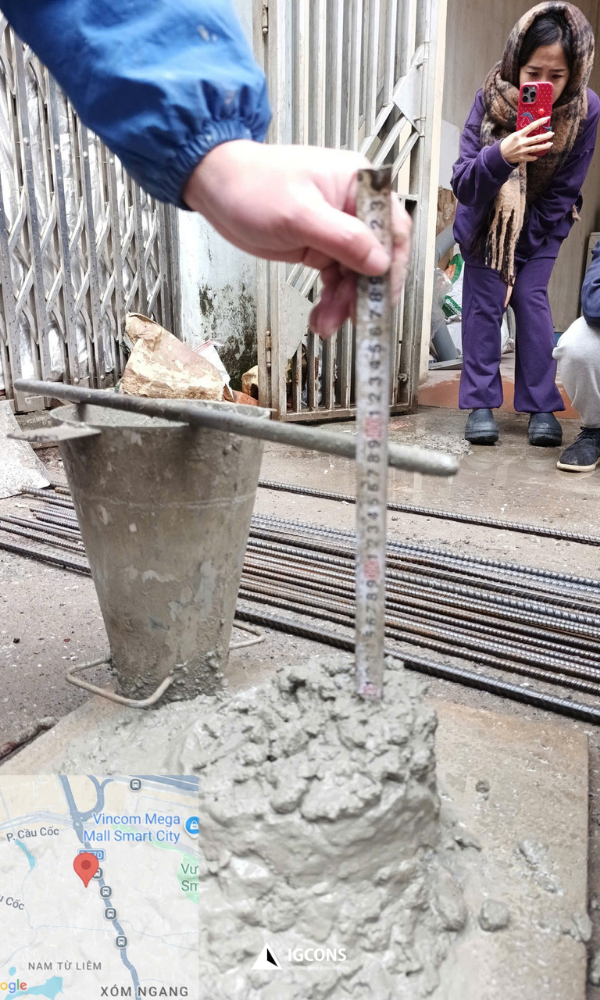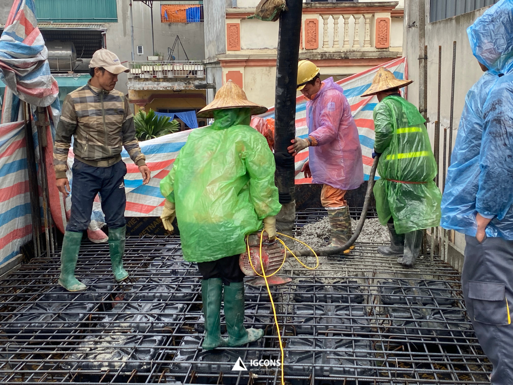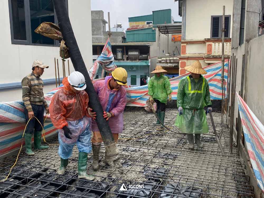 Trong suốt quá trình thi công, đội ngũ kỹ sư và giám sát IGCONS luôn túc trực tại công trường để kiểm tra chất lượng bê tông, theo dõi điều kiện thi công và kiểm soát an toàn lao động, đảm bảo hạng mục được triển khai đúng kỹ thuật – đúng tiến độ – đúng tiêu chuẩn chất lượng.