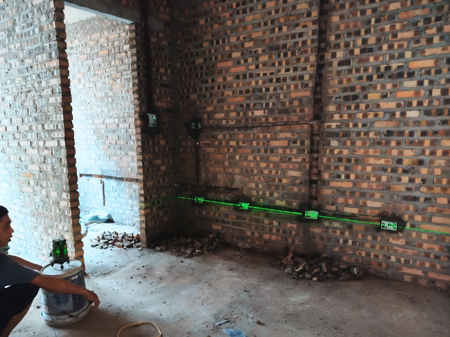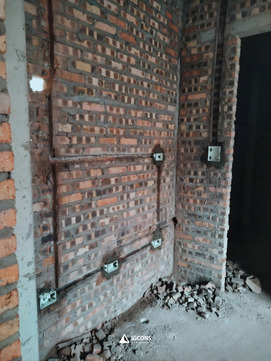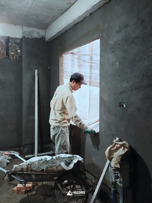 Trong quá trình thi công, đội ngũ kỹ sư và giám sát IGCONS thường xuyên kiểm tra từng chi tiết, từ chất lượng lớp trát đến vị trí lắp đặt đế âm điện, đảm bảo tất cả đều tuân thủ đúng tiêu chuẩn kỹ thuật và bản vẽ thiết kế.