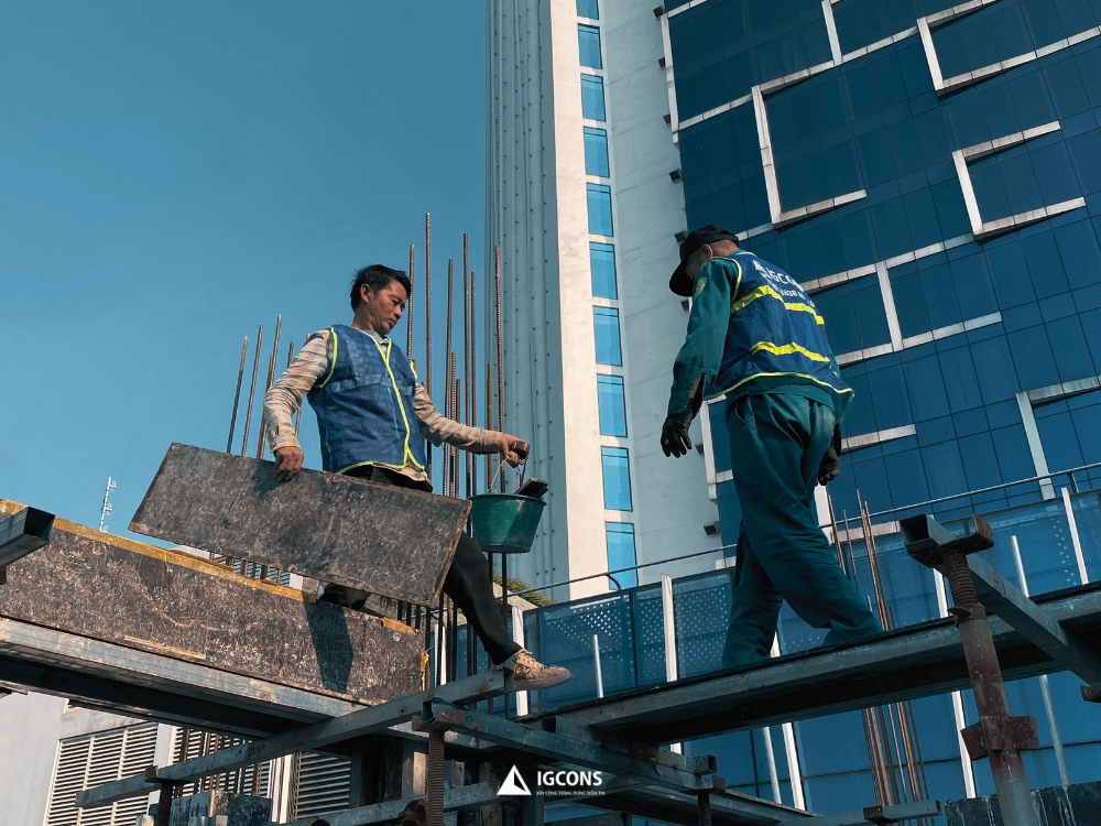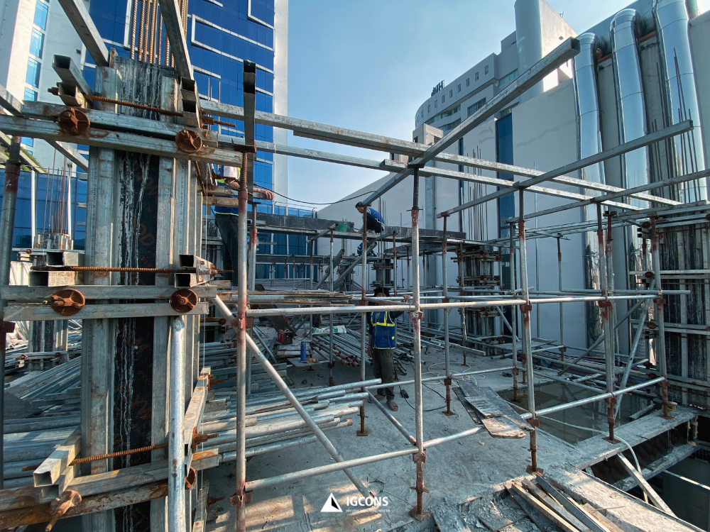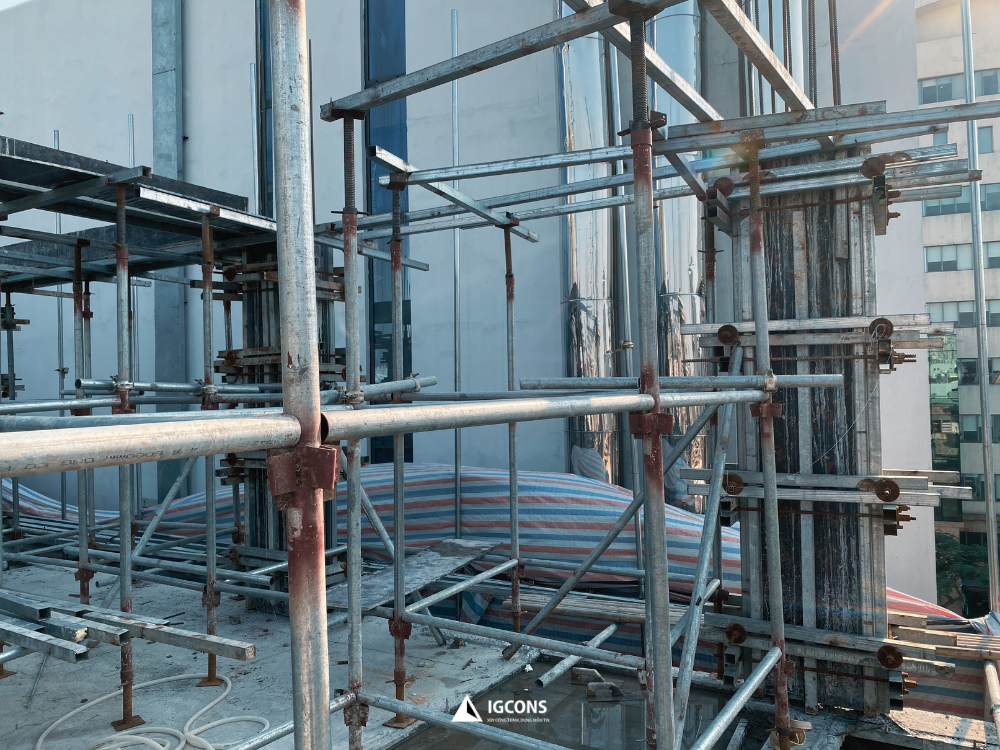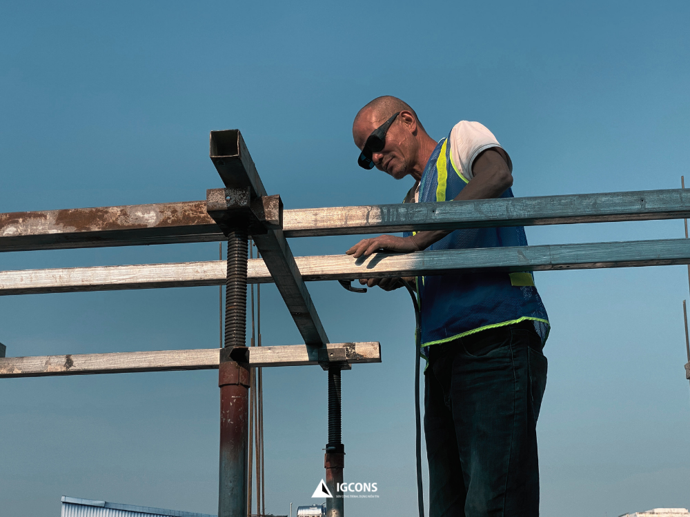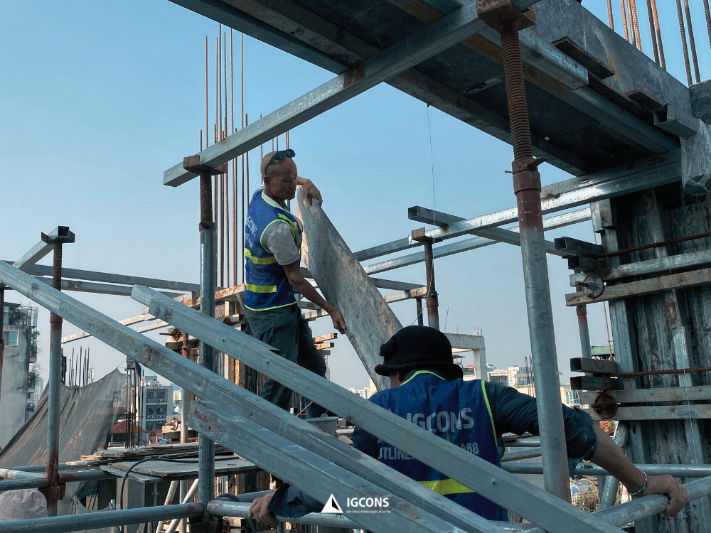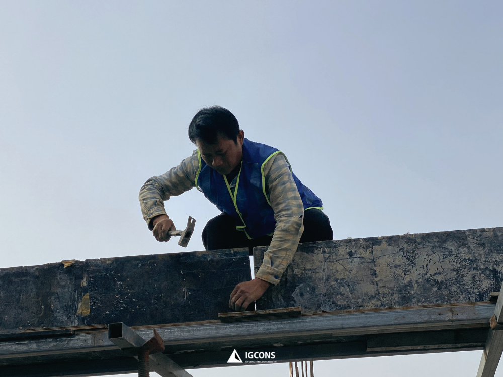 Trong suốt quá trình thi công, đội ngũ giám sát IGCONS thường xuyên theo dõi từng chi tiết nhỏ, từ liên kết cốp pha đến biện pháp an toàn lao động, nhằm đảm bảo tiến độ – chất lượng – an toàn luôn được kiểm soát chặt chẽ.