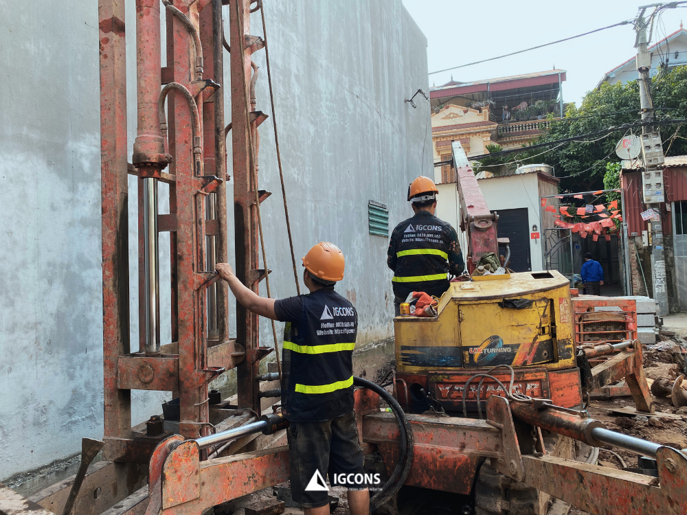 Trong suốt quá trình thi công, đội ngũ giám sát IGCONS thường xuyên kiểm tra chi tiết từng công đoạn, đảm bảo công tác ép cọc được thực hiện đúng kỹ thuật – đúng tiến độ – đảm bảo an toàn.