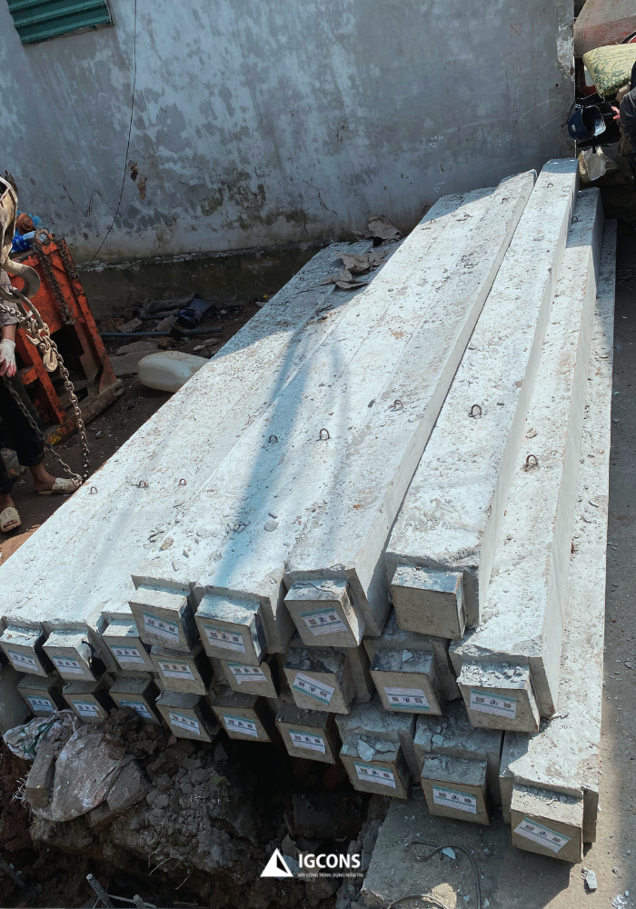• Tập kết và kiểm tra chất lượng cọc bê tông trước khi thi công.