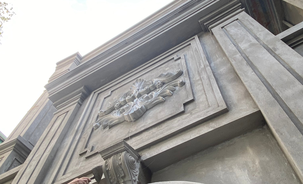 Hoàn thiện mặt tiền theo phong cách tân cổ điển: lắp đặt phào chỉ, mảng tường trang trí, hệ lan can và cửa mặt tiền theo thiết kế chuẩn, đảm bảo độ sắc nét từng chi tiết và sự đồng nhất tổng thể.