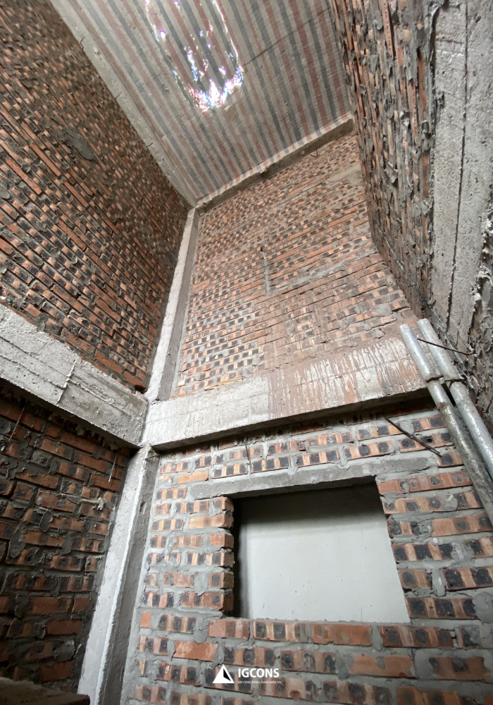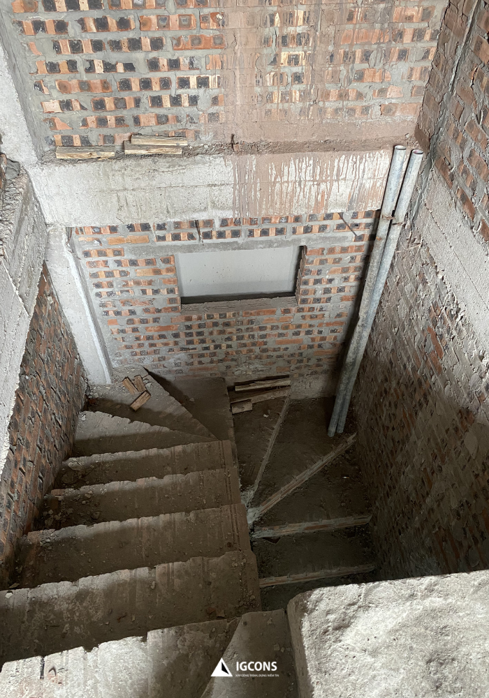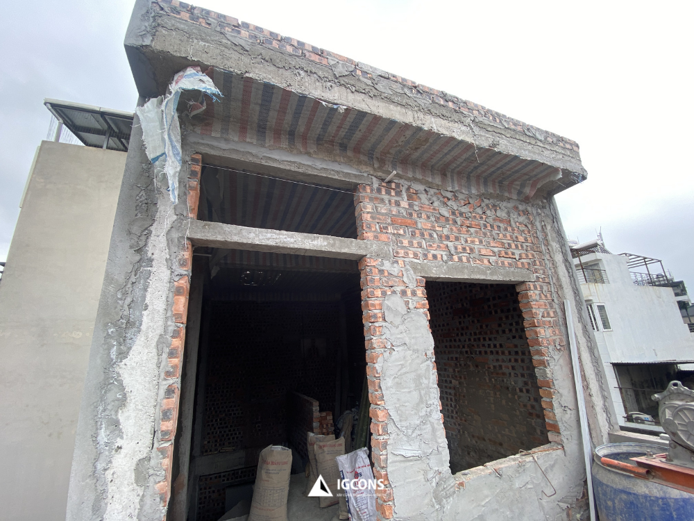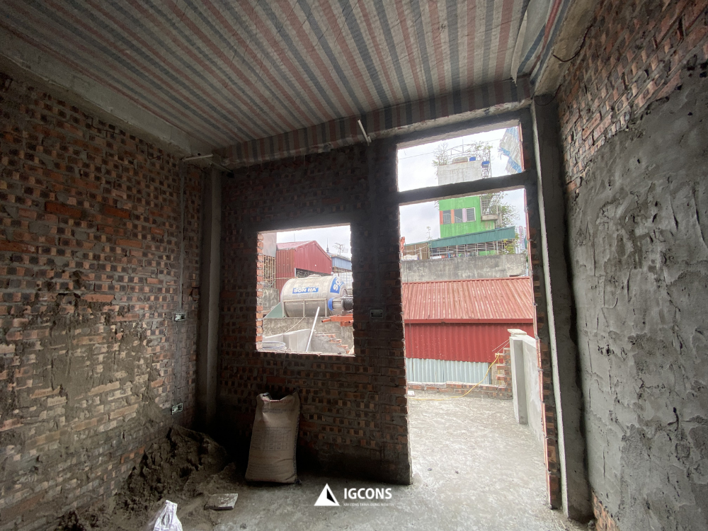 Tại dự án nhà anh Lâm tại khu vực Kim Giang, sau quá trình triển khai các hạng mục kết cấu chính, đội thi công IGCONS đang bước vào giai đoạn hoàn thiện xây thô – một cột mốc quan trọng trước khi chuyển sang thi công hoàn thiện nội thất.
