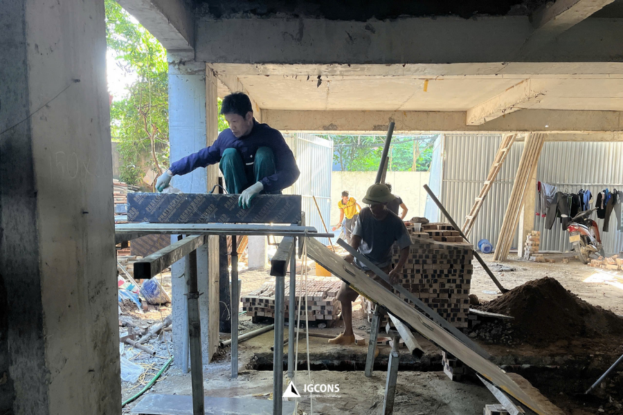Tuân thủ chặt chẽ quy trình kỹ thuật: đội ngũ giám sát IGCONS thường xuyên kiểm tra từng hạng mục để bảo đảm tiến độ – chất lượng – an toàn trong quá trình thi công.