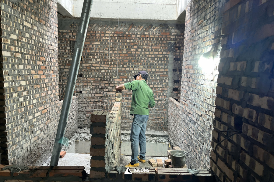 Sử dụng gạch tiêu chuẩn chất lượng cao, mạch vữa đều, đúng kỹ thuật, tạo bề mặt phẳng và đẹp để thuận lợi cho giai đoạn hoàn thiện sau này.
