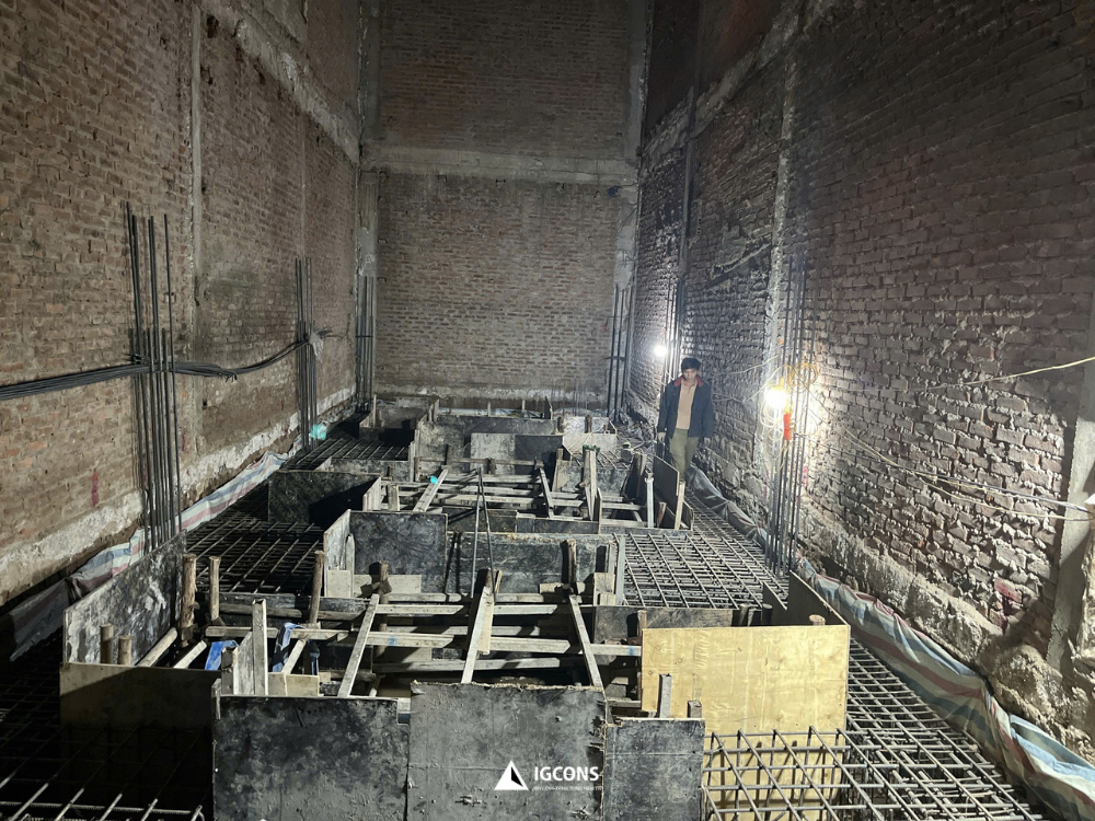 Song song với đó, đội ngũ kỹ sư và giám sát IGCONS thường xuyên theo dõi cao độ, kích thước móng và điều kiện thi công thực tế, đảm bảo hạng mục móng được thực hiện đúng thiết kế – đúng kỹ thuật – đúng tiêu chuẩn an toàn.