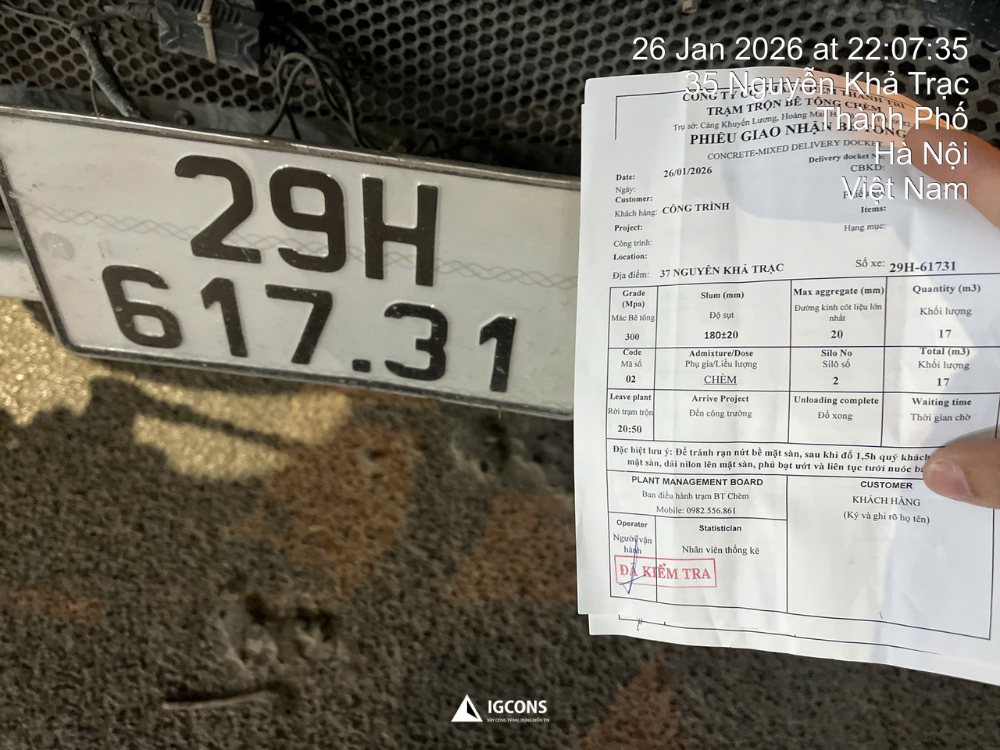 26/1/2026 Cập nhật công tác đổ bê tông móng công trình Nguyễn Khả Trạc – chú Dụng