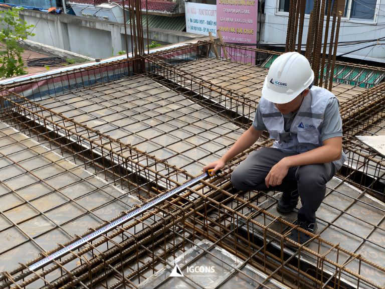 Trong suốt quá trình thi công xây thô, đội ngũ kỹ sư và giám sát IGcons: