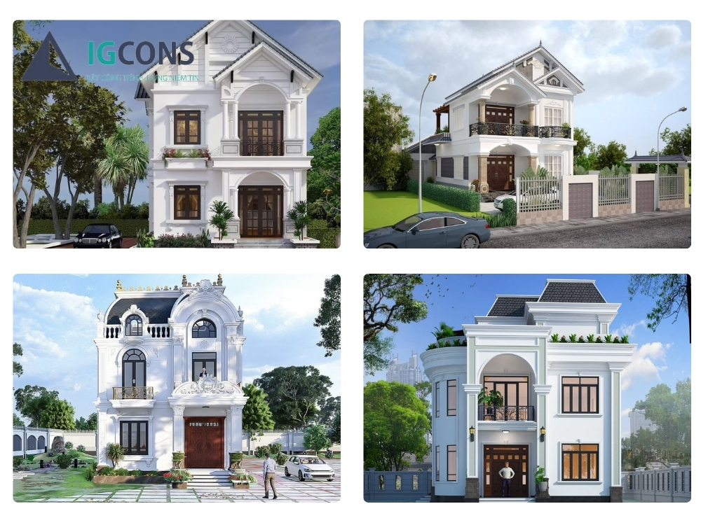 - Tân cổ điển: Là sự kết hợp hài hòa giữa nét cổ điển sang trọng và sự phóng khoáng của kiến trúc hiện đại. Đặc trưng bởi các đường phào chỉ tinh tế, cột trụ đối xứng và mái vòm nhẹ nhàng.